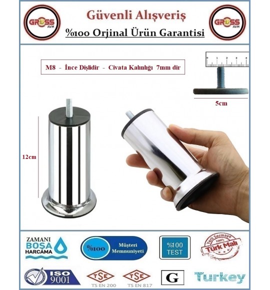 • Koltuk, Yatak, Mobilya, Baza Ayağı 12cm - M8 İnce Diş - 2 Adet