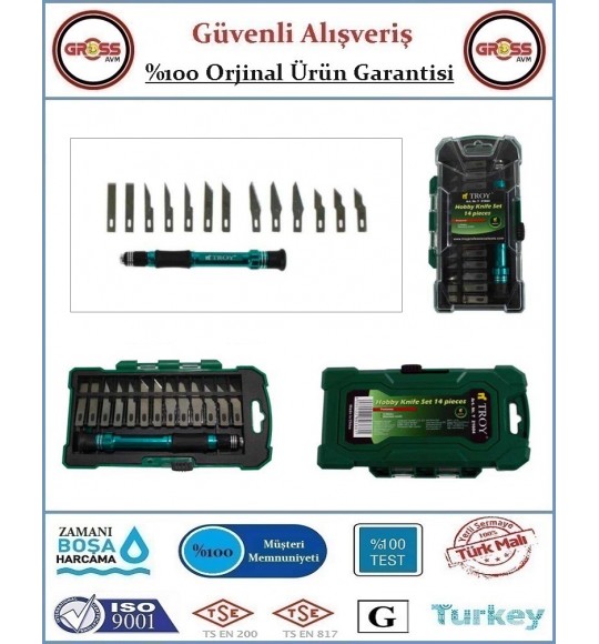 TROY Profesyonel Hobi Maket Bıçağı Seti - Orjinal Ürün - 14 Parça