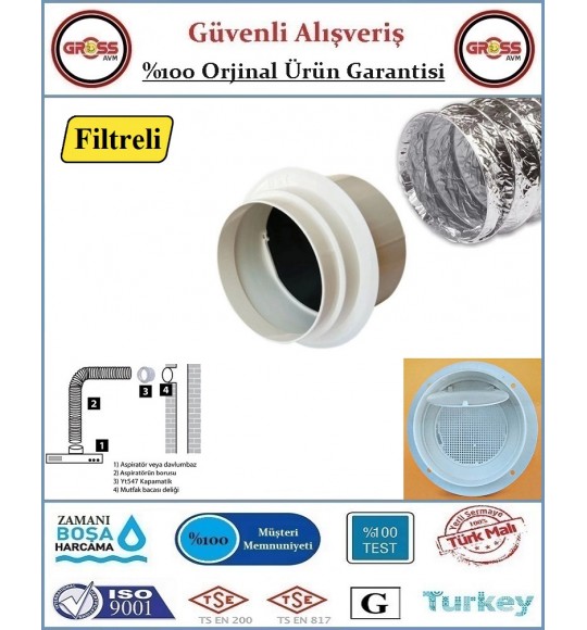 Filtreli Baca Klapesi - Aspiratör Davlumbaz Koku Önleyici - Bacadan Gelen Haşerelere Son