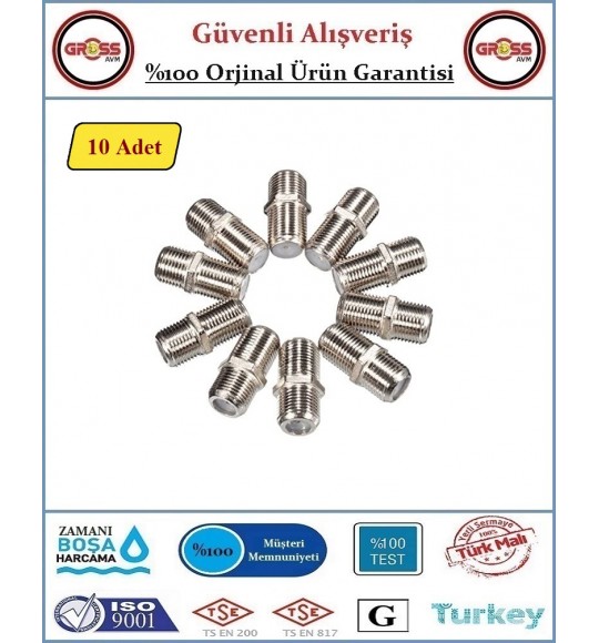 • F Ara Konnektör Uydu Anten Kablo Birleştirici - Rg6 - 10 Adet