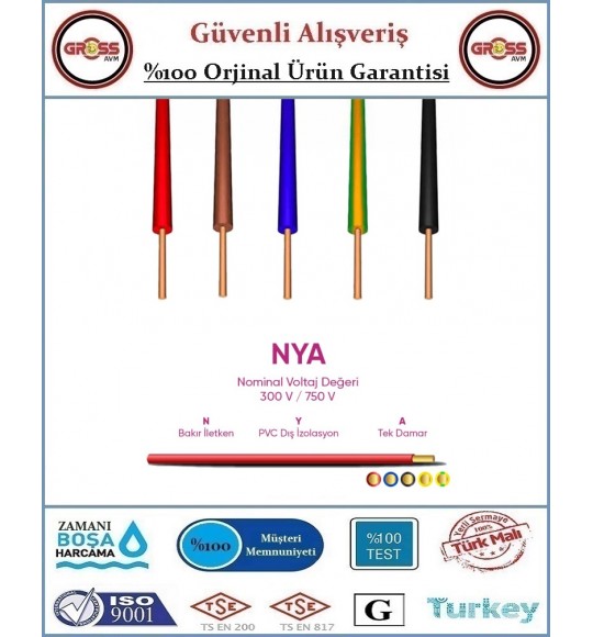 Ürünümüz Tek Damar %100 Bakır Orjinal Öznur NYA Elektrik Tesisat Kablosudur