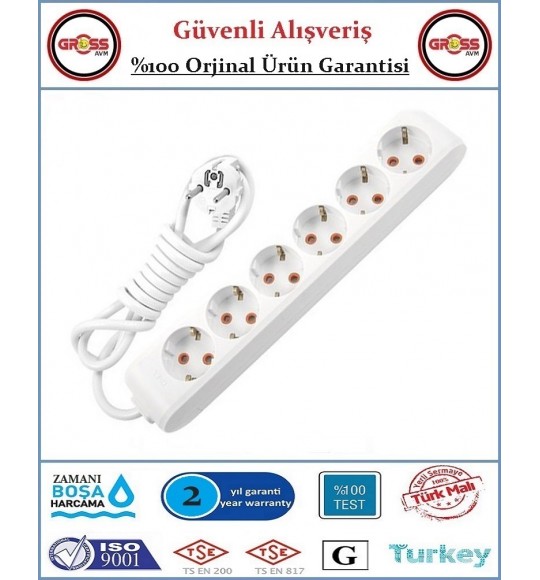 Viko Multi-Let Altılı Topraklı Priz - 3 Metre - Çocuk Korumalı - Beyaz - Orjinal Ürün
