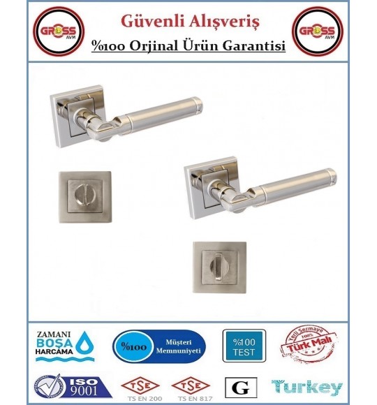 Sağ ve Sol Olmak Üzere 1 Takım Kapı Kolu - 1 Adet Kare Kol Demiri - 4 Adet Kapı Kol Rozeti - 8 Adet Montaj Vidası