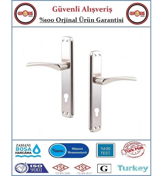 Bravo Yale Dış Çelik Kapı Kolu - Mat Nikel Kaplama - 1 Takım Ön ve Arka