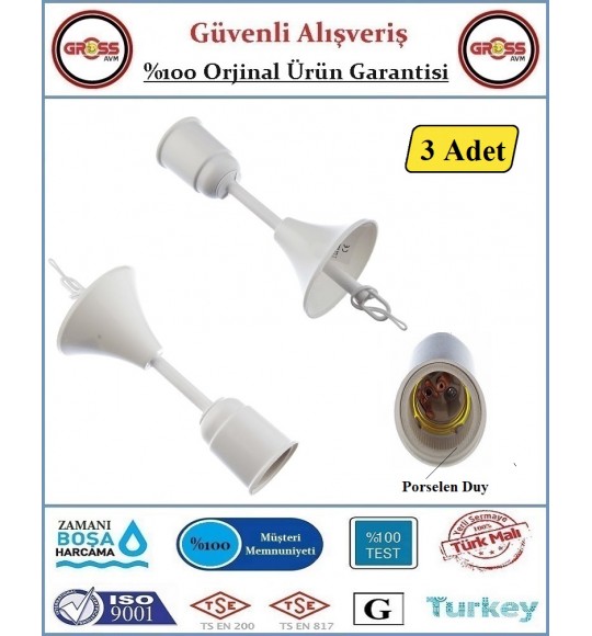 Muhafazalı Askılı Asma Duy - Porselen Duy - 3 Adet