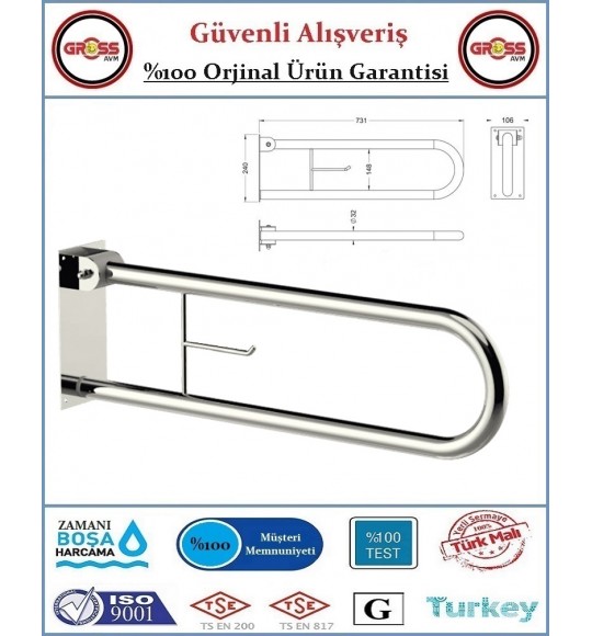 Mafsallı Engelli Tutunma Barı - Bedensel Engelli Tutunma Barı -73X23