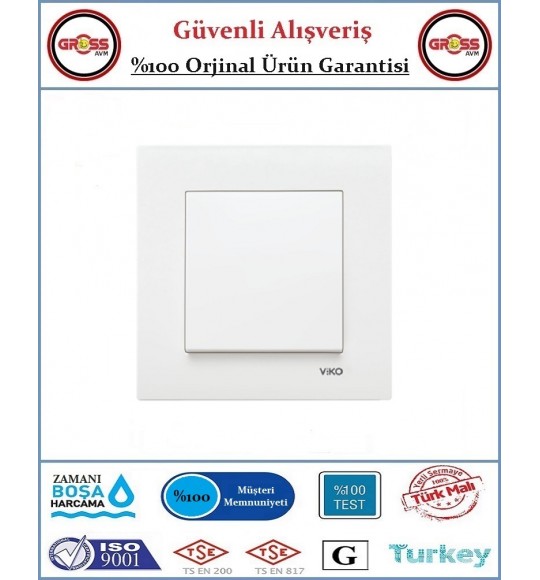 Viko Karre Tekli Anahtar - Çerçeve Dahil - Beyaz - Orjinal Ürün