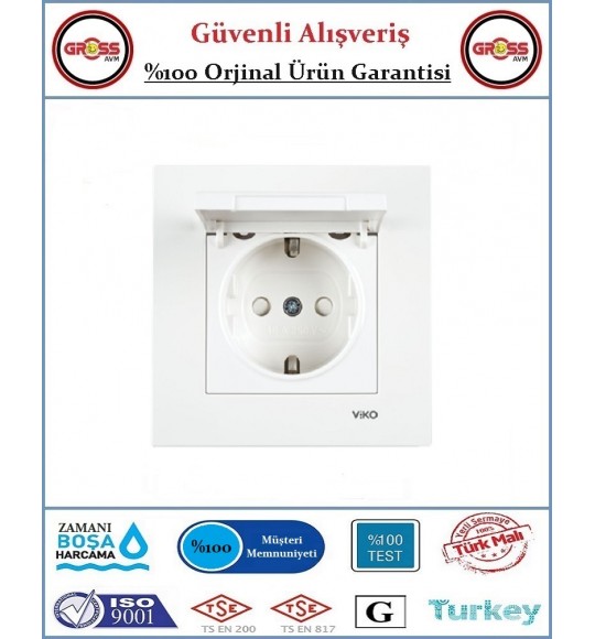 Viko Karre Kapaklı Topraklı Priz - Çerçeve Dahil - Beyaz - Orjinal Ürün